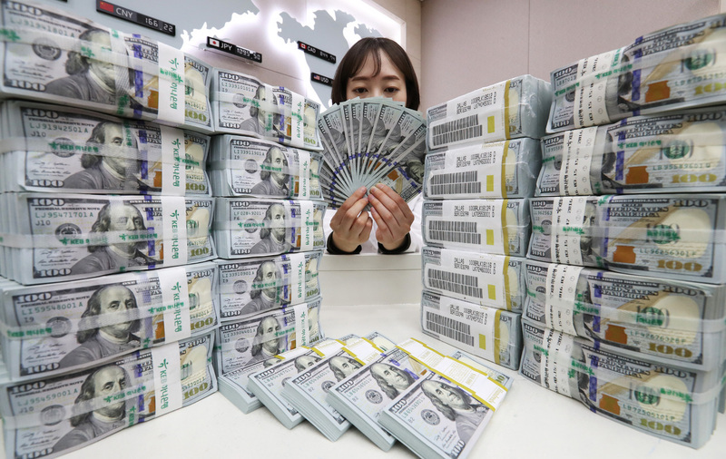 Foreign currency deposits hit an all-time high in South Korea, increasing by US$7.87 billion to US$93.32 billion last month, surpassing US$90 billion for the first time.