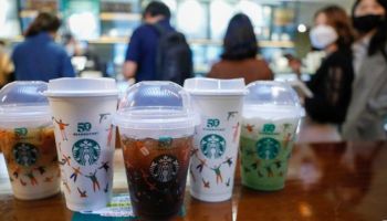 The event was to mark the US coffee chain's 50th anniversary, for which it served grande-sized beverages in limited-edition plastic tumblers, for the cost of the beverages only.