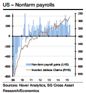 To be sure, 210k increase projected in payrolls would be strong enough to reduce the unemployment rate and thus mark further progress on the labour market, consistent with the Fed's stated condition for a lift-off in rates.