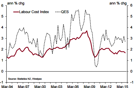 Leaving the broader QES measure 2.9% higher over the past year, measure of New Zealand's wages rose 0.9% over the quarter. The wage inflation hasn't shown any material acceleration since the economy exited recession in 2011, in nominal terms.