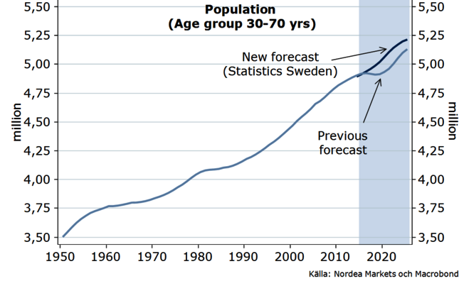 Previous forecasts pointed to a marked deceleration in the pace of increase in Sweden's population in the age group 30-70 years, an age group that typically drives housing demand.