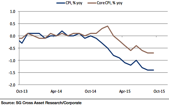 The headline CPI is lagging core CPI by 0.7ppts in Q3 2015, and this gap is consistent from March. This is expected to reduce over months to come unless pick up is seen in the oil prices.