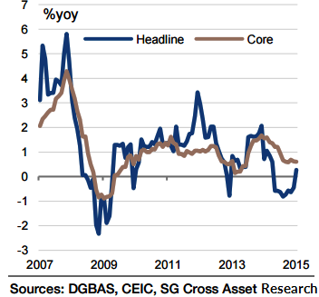 Taiwan's fresh food price strength may have been extended, since the last strong typhoon, Dujuan, occurred at the end of September. Hence, the fresh food prices are likely to have declined only slightly in October.