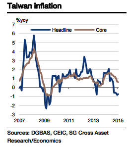 "Taiwan's CPI inflation is expected to inch higher to -0.6% yoy in June, due to higher food price inflation", says Societe Generale.