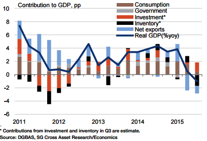 "Without further details in the flash GDP report, the volatile swing in inventories is expected to have shaved at least 2pp off headline GDP growth. Meanwhile, external trade continued to decelerate. Real exports declined at a stronger rate of 2.9% yoy in Q3 after the drop of 1.3% yoy in Q2", says Societe Generale.