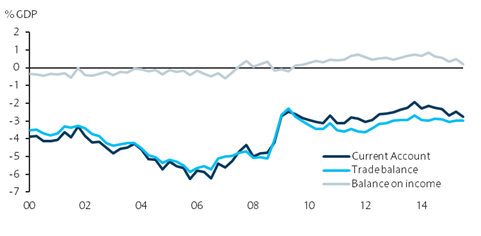 "The balance on goods remained negative, reflecting the ongoing increases in imports to the US, as import prices fall and volumes increase. On the month, however, the goods deficit widened less than $1bn. Overall, the current account deficit widened to 2.7% of GDP in Q2 from 2.5% in Q2", says Barclays.