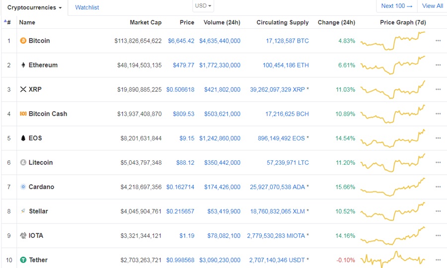IOTA, ranked ninth, saw a consistent buying market in a three-day period, according to NewsBTC. Its current price is $1.18 with a 14.16 percent upsurge within 24 hours.