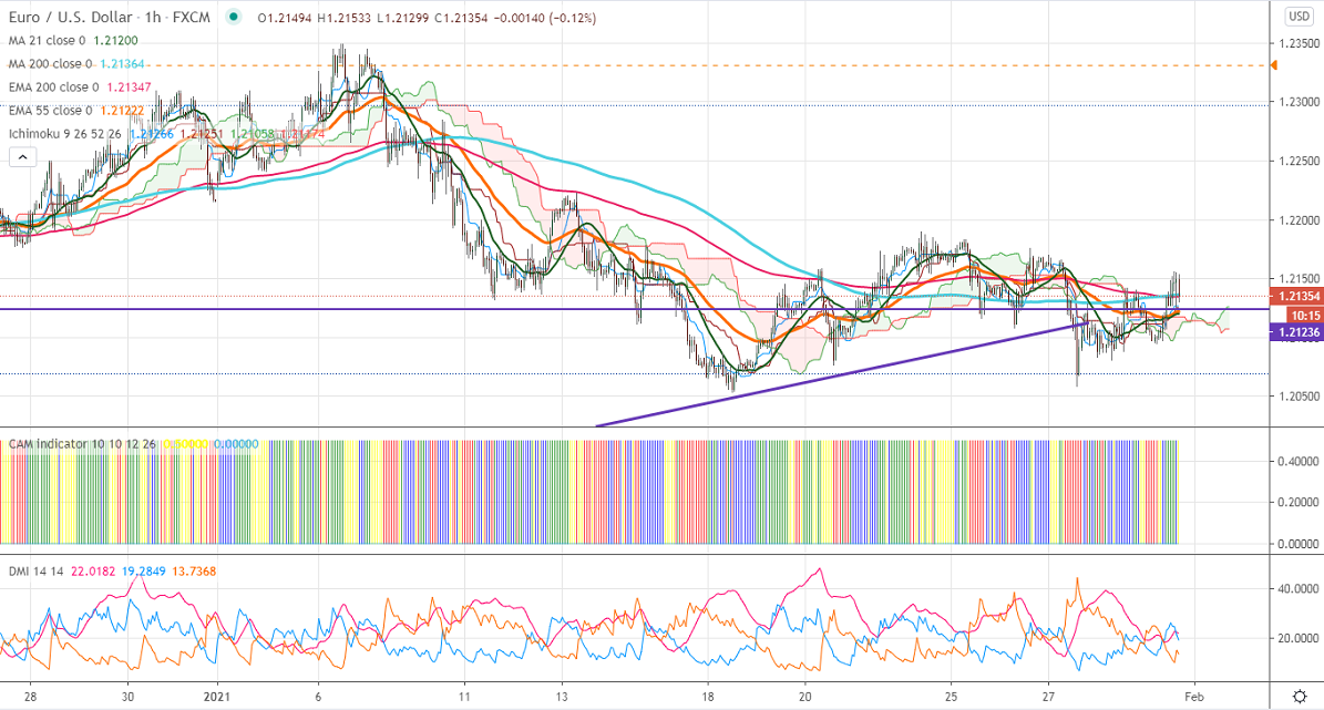 On the higher side, near-term resistance at 1.2180. Any indicative violation above targets 1.2200/1.2260. The next support is around 1.21150. Breach below will drag the pair down till 1.2090/1.2050/1.2000.