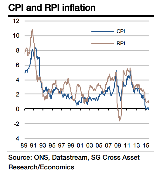 Services inflation should at least match the September reading of 2.5% yoy and might exceed it. This should result in core inflation rising from 1.0% to 1.1% yoy. Overall, this suggests that inflation should rise from -0.1% to 0.0% yoy. RPI inflation should rise from 0.8% to 1.0% yoy.