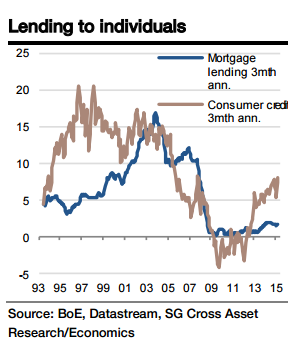 The current strength of consumer demand has been fuelled by rising real incomes but also by strong consumer credit growth. In contrast, whilst consumer confidence is at very high levels, it is striking that mortgage activity has only responded in a relatively muted fashion.