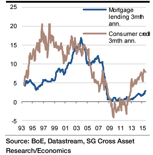 At last there seems to be a little more life in the UK mortgage data with steady increases over the last three months. The latest Credit Conditions Survey (CCS) reported lenders expecting to increase mortgage availability in this quarter but looked for no increase in demand - an odd combination - demand is expected to increase. In that regard, the RICS survey provides a very good leading indicator of approvals, new buyer enquires. Enquiries softened in September but have displayed rising qoq growth. This is a reliable indicator of quarterly trends in approvals.