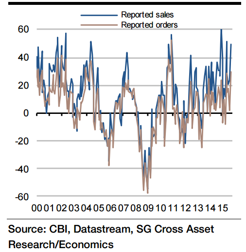 The September survey reported a massive boost in sales which was corroborated by the official data which saw sales surge by 5.9% yoy from 3.2%. It is believed that mom September sales were boosted by the Rugby World Cup and the inclusion of two of the three days of the August bank holiday weekend in the September survey period; yoy sales were further boosted by the comparison with a year earlier when sales fell by 0.9% mom.