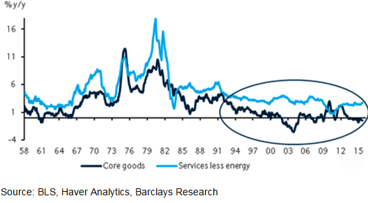 In particular, core goods prices are expected to remain a drag, driven by the renewed decline in commodity prices and the recent surge in the value of the dollar.