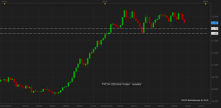 FXCM US Dollar index is currently trading at 11867, on its way to third consecutive weekly decline since March-April this year.