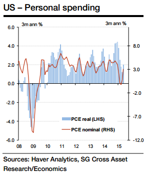 Admittedly, inflation will "eat up" about half of this increase given our forecast for a 0.4% rise in the PCE deflator. The remaining 0.4% gain in real personal consumption would put the May level 2.2% above the Q1 average, significantly improving the momentum relative to the start of the quarter, added Socgen.