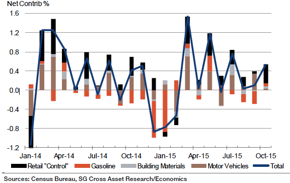 "Our projection, if realized, would place control sales in October a solid 3.1% annualized above the July-September average, following a 4.6% summer-quarter gain", added Societe Generale.