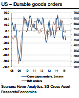 "The drag from the dollar is likely to be more persistent, but on balance a reacceleration in equipment spending growth in second half of the year to about 5.8%, up from a 1.7% average over the past two quarters can be looked for", added Socgen.