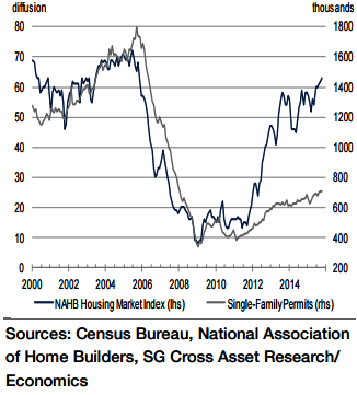 "While a historically wide gap will continue to persist, the projection would be consistent with single-family building permits climbing to an eight-year high seasonally adjusted annual rate of 710,000 in the Census Bureau's October report", says Societe Generale.