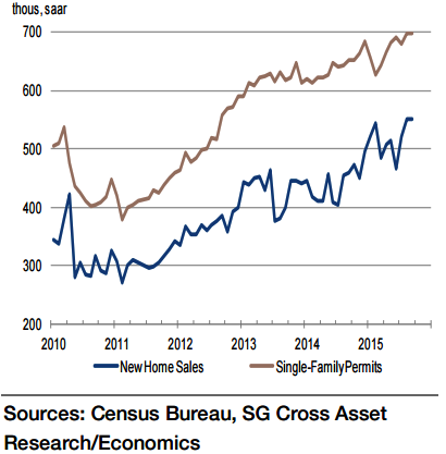"With the number of homes available for sale expected to be unchanged at 216,000 during the reference period, the stock of unsold dwellings likely remained at 4.7 months' supply", says Societe Generale.