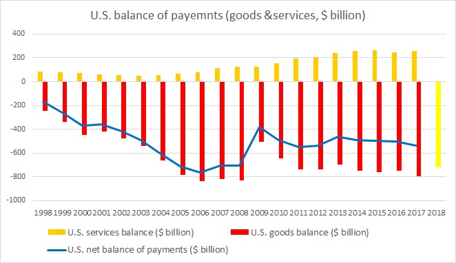 According to data from U.S. census bureau, the U.S. goods trade deficit with the rest of the world reached a new record high of $76.98 billion in October. At this rate, the U.S. trade deficit is set to surpass last year’s $795.69 billion in 2018.