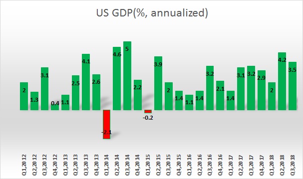 According to data from ADP, the U.S. economy added 227,000 new jobs in October, with 38,000 jobs being created in the goods-producing sectors. The GDP estimate also points to expansion. According to the latest reading, Atlanta Fed’s ‘GDP Now’ model is forecasting a 3 percent growth in the final quarter of the year, revised up from 2.6 percent. The U.S. economy has growth 2 percent in the first quarter of 2018, 4.2 percent in the second, and by 3.5 percent in the third quarter of this year.