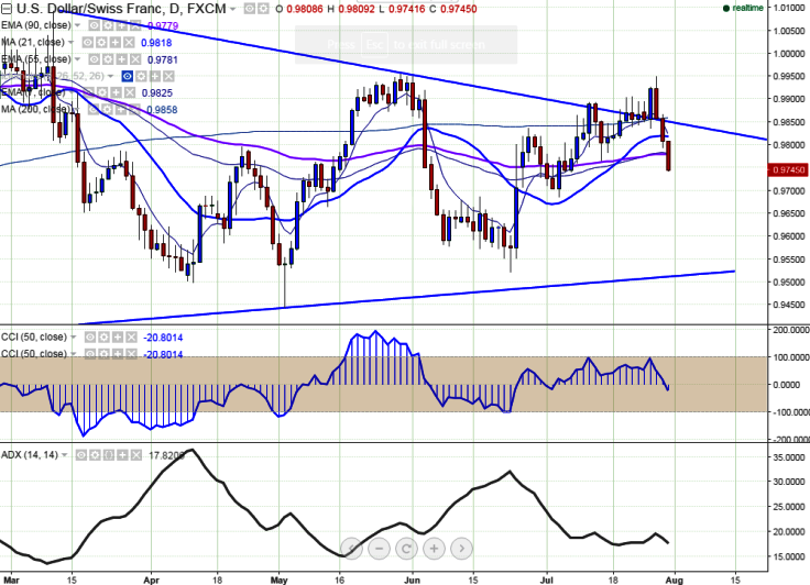 - The pair has broken major support 0.9819 and declined till 0.97497 at the time of writing.It is currently trading around 0.97550.
