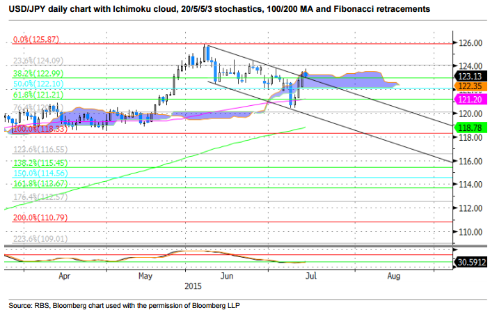 Last week we mentioned that the USD/JPY correction could end soon, which indeed was the case after the pair bounced from the bottom of the channel and pressured the top of the Ichimoku cloud after triggering a bullish flag pattern. Also 20/5/5/3 stochastics is turning bullish from its oversold region, confirming the correction is done.