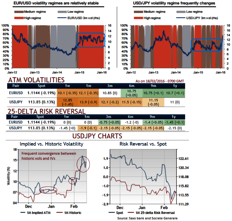 It is keenly observed that USDJPY evidences the frequent convergence between historic vols and IVs from end of January that is when Yellen's 1st monetary policy meeting after last year's rate hike in December.
