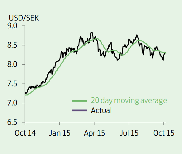 The Swedish Krone has very much been taking its lead from domestic data. Headline inflation for September was firmer than August, at 0.1%, leading to an upward move in rates. However, uncertainty regarding the path of ECB quantitative easing hangs over the Riksbank, and may add pressure to further ease policy from these ultra-loose levels.