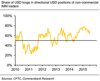 The USD optimism of the price sensitive market participants is pronounced but still a long way off the extreme levels seen in the past. This indicates, the USD strength seen over the past few weeks rests on a solid foundation. It is not caused by the fact that the speculative market participants have accumulated so many dollars that they are on their last legs, says Commerzbank. And for the first time in weeks participants entered into sizeable EUR shorts.