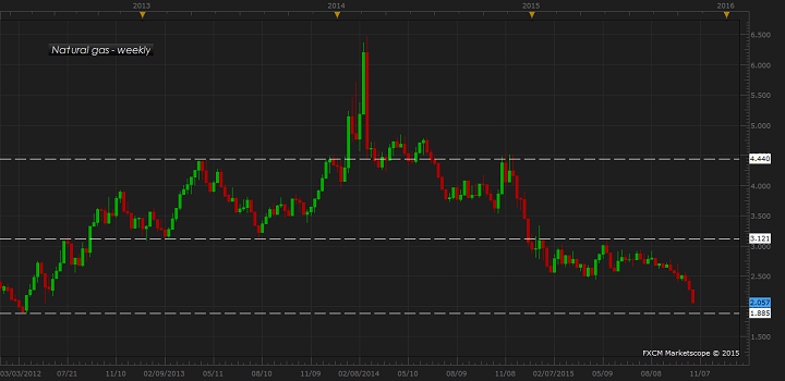 Natural gas, though might bounce back from $2 psychological support area, it could go down further if weather keep disappointing.