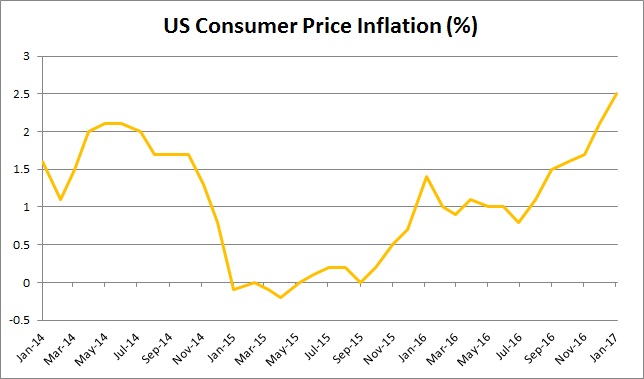 - As inflation expectations increases, the fed has projected three rate hikes for 2017. Hence, the actual inflation would need to evolve in such manner to warrant hikes. Recently, some measures of inflation have reached Fed’s 2 percent medium-term goal.