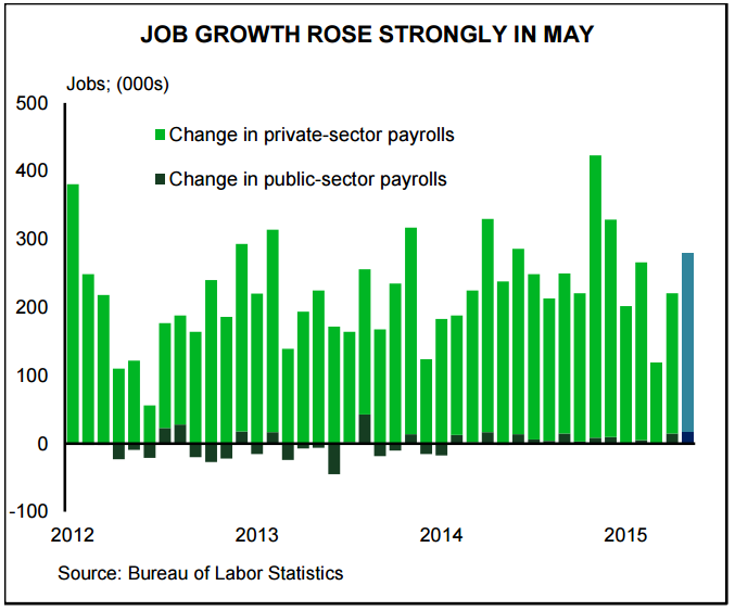 Optimism received another boost on Friday, with non-farm payrolls rising 280k in May, smashing expectations for 226k. Average hourly earnings rose 0.3% month over month, and combined with the growth in payrolls, aggregate wages expanded a robust 0.6% on the month.