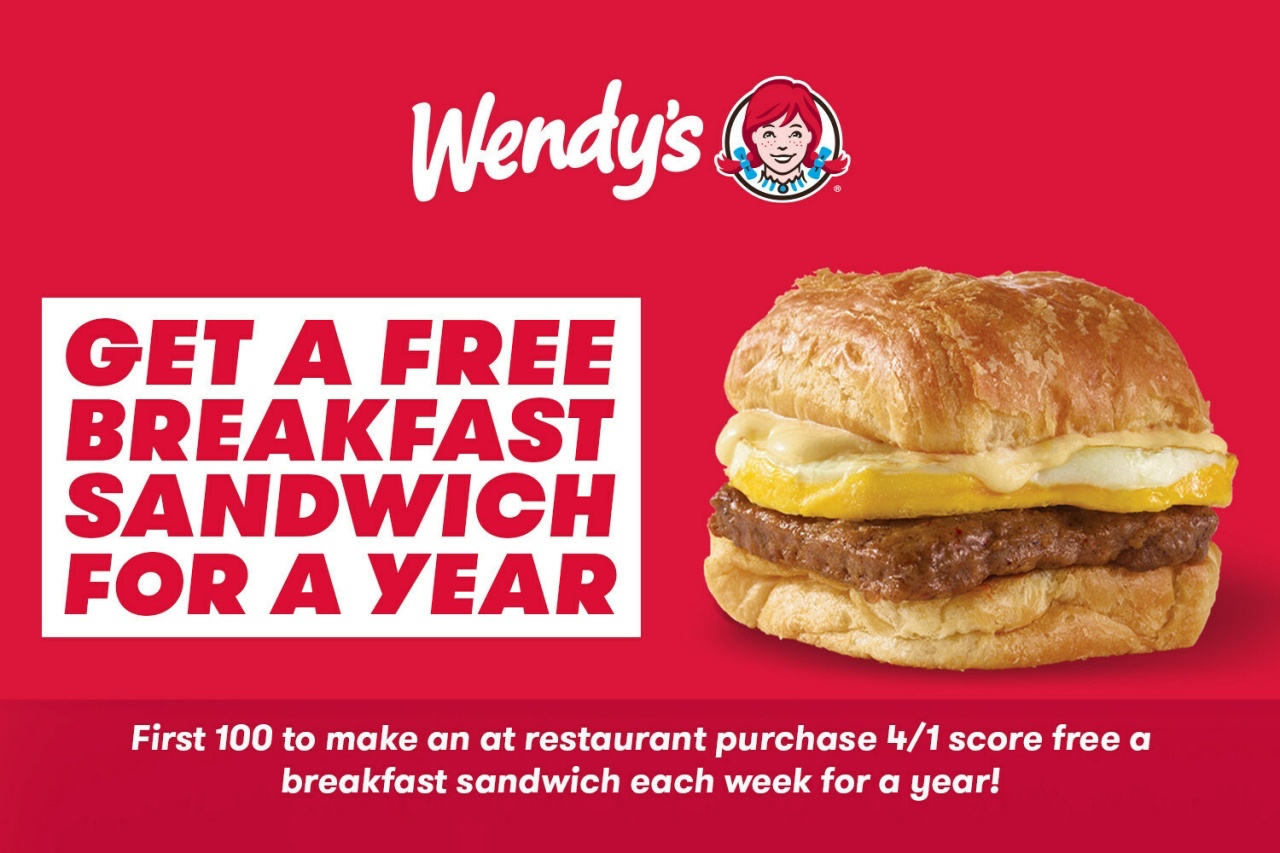 As posted in the press release, coupon cards for a year of free breakfast sandwiches, including the Breakfast Baconator, will be given out at different times of the day per branch at 400 Wendy's locations in Florida. The restaurant will distribute the cards to customers who are physically present, which means via dine-in, drive-thru, and carry-out. Delivery orders are not included in the promo.