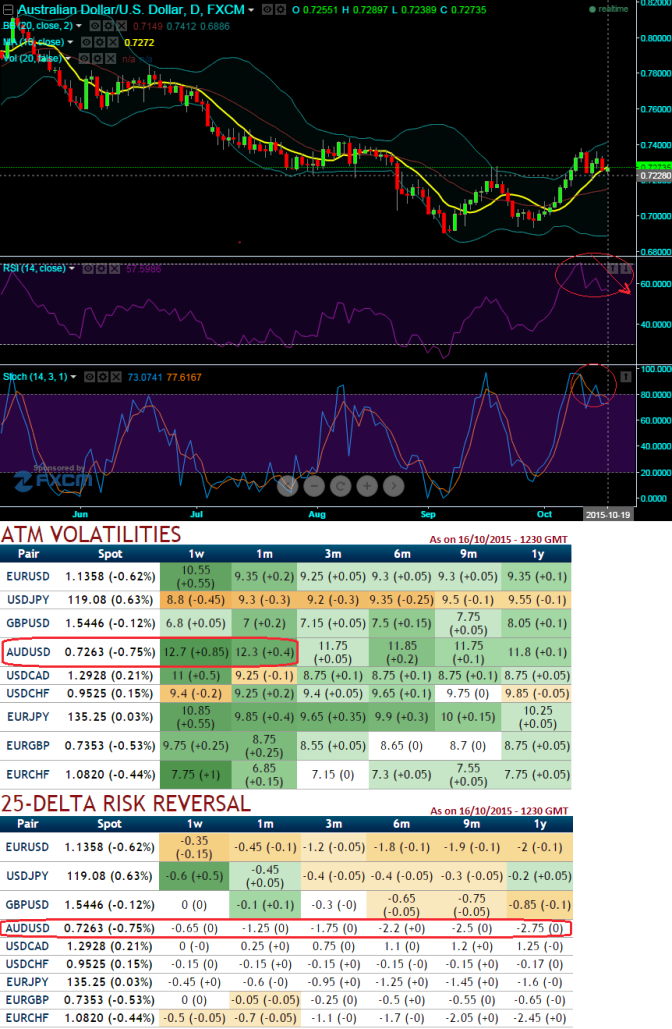 As you can observe from the diagram the implied volatility for near month at the money contracts of AUDUSD pair has been highest among G20 currency pool and is seen 12-12.5% levels for 1m expiry.
