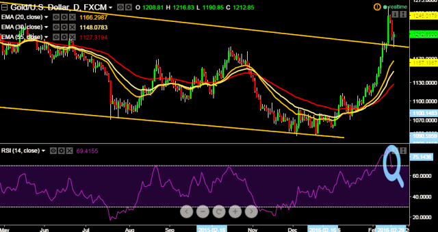 - It made intraday high at $1190 in Asian hours while intraday high at $1216 marks.
