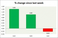 Dollar index trading at 96.96 (+0.27%) Strength meter (today so far) Aussie +0.02%, Kiwi +0.29%, Loonie +0.04% Strength meter (since last week) Aussie +1.41%, Kiwi +1.02%, Loonie -0.22% AUD/USD Trading at...