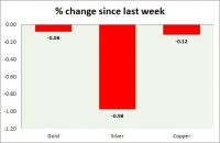 The metal pack is down today. Performance this week at a glance in chart table - Gold: Gold is trading sideways, looking for further direction cue. Todays range $1265-1270 We expect the gold price to reach...