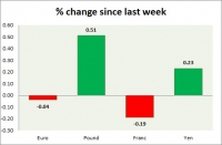 Dollar index trading at 97.44 (-0.15%) Strength meter (today so far) Euro +0.40%, Franc +0.33%, Yen +0.19%, GBP +0.26% Strength meter (since last week) Euro -0.04%, Franc -0.19%, Yen +0.23%, GBP +0.51% EUR/USD...