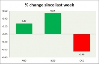 Dollar index trading at 97.39 (-0.20%) Strength meter (today so far) Aussie +0.22%, Kiwi +0.42%, Loonie -0.15% Strength meter (since last week) Aussie +0.27%, Kiwi +0.54%, Loonie -0.45% AUD/USD Trading at...