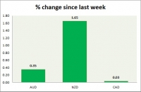 Dollar index trading at 97.28 (-0.06%) Strength meter (today so far) Aussie +0.14%, Kiwi +0.40%, Loonie +0.13% Strength meter (since last week) Aussie +0.35%, Kiwi +1.65%, Loonie +0.03% AUD/USD Trading at...