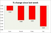 Dollar index trading at 97.28 (-0.06%) Strength meter (today so far) Euro +0.08%, Franc -0.09%, Yen +0.12%, GBP +0.05% Strength meter (since last week) Euro -0.16%, Franc -0.46%, Yen -0.69%, GBP -0.48% EUR/USD...