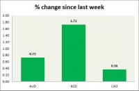 Dollar index trading at 96.97 (-0.02%) Strength meter (today so far) Aussie +0.52%, Kiwi +0.58%, Loonie +0.21% Strength meter (since last week) Aussie +0.72%, Kiwi +1.72%, Loonie +0.36% AUD/USD Trading at...