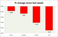 Dollar index trading at 99.78 (+0.15%) Strength meter (today so far) Euro -0.15%, Franc +0.01%, Yen +0.38%, GBP -0.52% Strength meter (since last week) Euro -0.43%, Franc -1.52%, Yen -2.24%, GBP -0.67% EUR/USD...