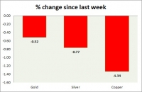 Metal pack is mixed today. Performance this week at a glance in chart table - Gold: Gold is grinding lower below the key support around $1230 area. Todays range $1225-1219 We expect the gold price to reach...