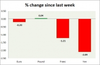 Dollar index trading at 99.46 (+0.01%) Strength meter (today so far) Euro -0.15%, Franc +0.00%, Yen -0.12%, GBP +0.01% Strength meter (since last week) Euro -0.20%, Franc -1.21%, Yen -2.09%, GBP +0.04% EUR/USD...
