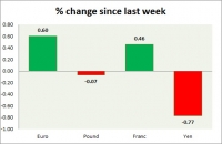 Dollar index trading at 98.88 (+0.10%) Strength meter (today so far) Euro -0.24%, Franc -0.42%, Yen +0.19%, GBP +0.09% Strength meter (since last week) Euro +0.60%, Franc +0.46%, Yen -0.77%, GBP -0.07% EUR/USD...
