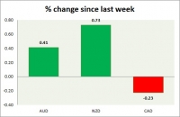 Dollar index trading at 99.08 (-0.05%) Strength meter (today so far) Aussie -0.21%, Kiwi -0.13%, Loonie -0.05% Strength meter (since last week) Aussie +0.41%, Kiwi +0.73%, Loonie -0.23% AUD/USD Trading at...