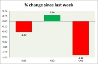 Dollar index trading at 99.90 (+0.07%) Strength meter (today so far) Aussie +0.25%, Kiwi +0.36%, Loonie -0.14% Strength meter (since last week) Aussie -0.42%, Kiwi +0.24%, Loonie -1.32% AUD/USD Trading at...