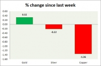 Metal pack is mixed today. Performance this week at a glance in chart table - Gold: Gold is gaining back some of the lost grounds. It is the best performer of the week among the pack so far. Todays range...